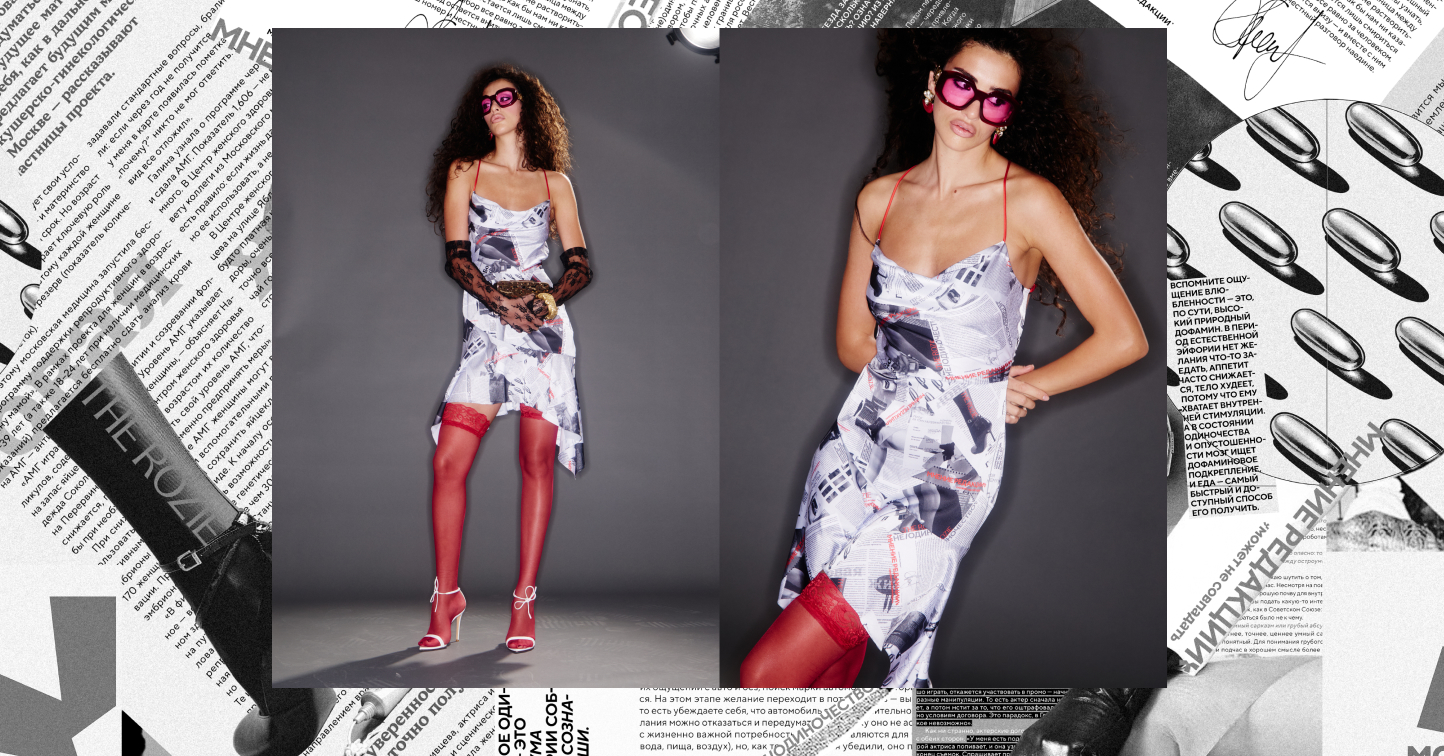 В основе коллаборации THE ROZIE x «Мнение редакции» лежит эстетика «газетного принта» — визуальный код, который стал культовым благодаря коллекции Джона Гальяно для Dior. Это символ эпохи, когда мода была формой провокации и ироничного диалога.